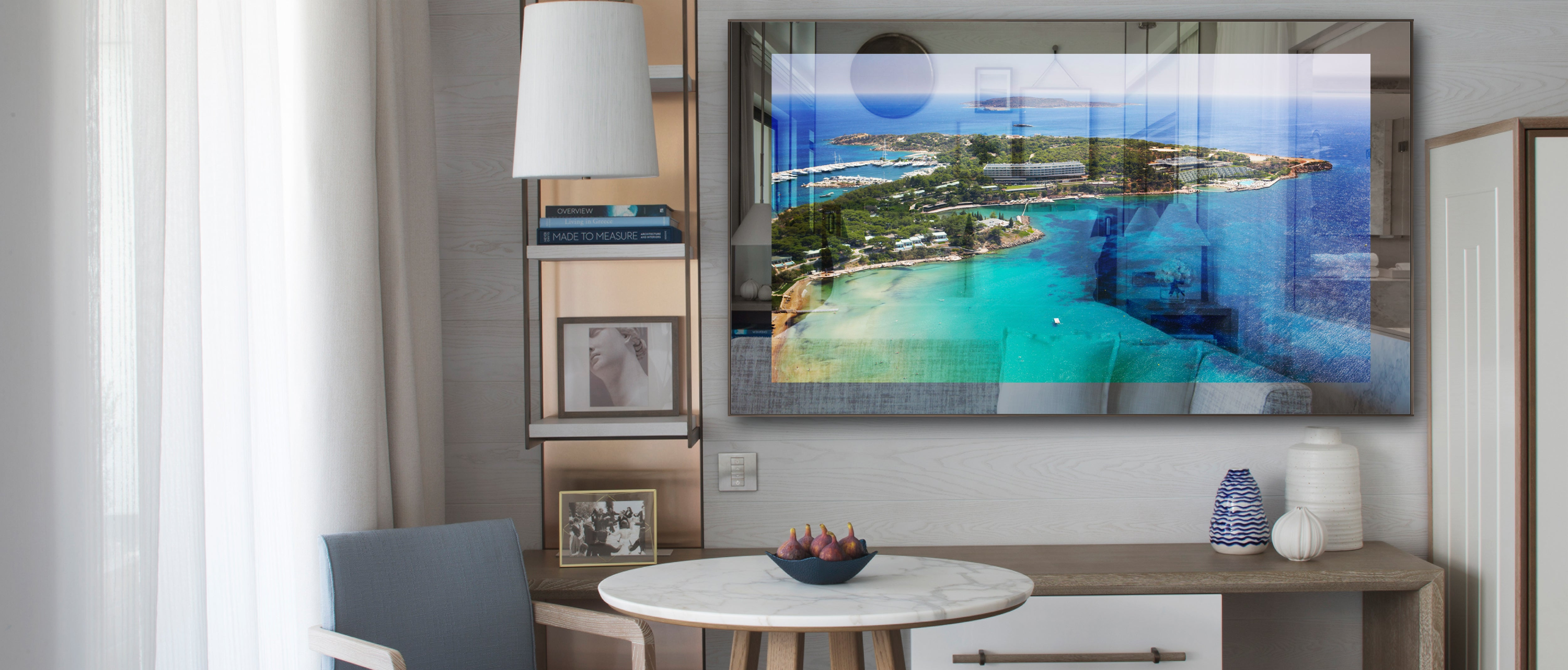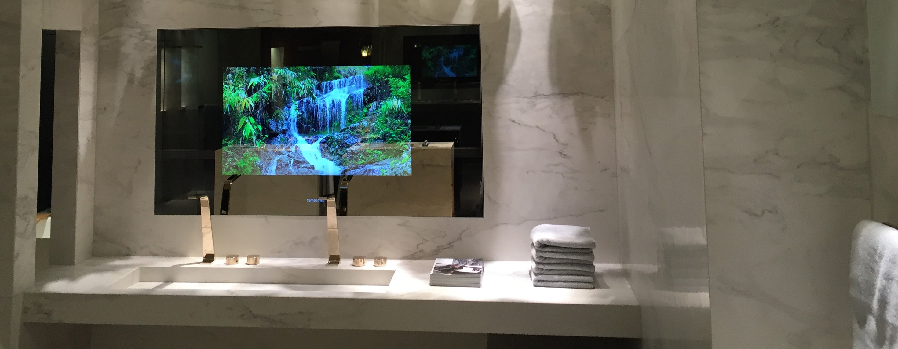 Unser hauseigenes Entwicklungsteam hat in den letzten 20 Jahren die ad notam Bildschirme immer weiter für den Einbau hinter Spiegelflächen optimiert, sodaß heute alle unsere Geräte ohne zusätzliche Luftventilation auskommen und eine hervorragende Bildqualität erzielt wird. Die Vorteile von ad notam liegen auf der Hand: Angefangen bei der rahmenlosen LCD Architektur, die ein nahtloses Anlegen des LCD an der Glasrückseite mittels patentierter Befestigungstechnik ermöglicht, über die High Brightness-Technologie, die für ein echtes Fernseherlebnis sorgt, bis hin zum Niederspannung–Stromversorgungssystem, das den Einsatz in Feuchträumen für alle ad notam LCD-Einbaumodule, sogar für den weltweit größten Spiegel TV mit einer 86“ Bildschirmdiagonale, erlaubt. Dies sind nur einige der Vorteile, die wir durch unseren großen Erfahrungsschatz im Bereich der Smart Mirror Technologie an Sie weitergeben können, um schnell auf persönliche Wünsche einzugehen und die neuesten Markttrends umzusetzen